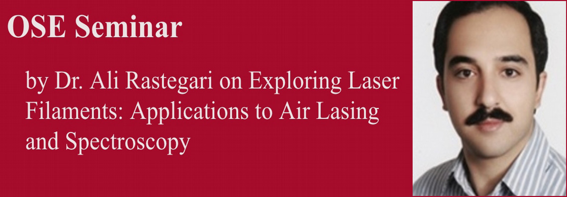 OSE Seminar by Dr. Ali Rastegari on Exploring Laser Filaments: Applications to Air Lasing and Spectroscopy